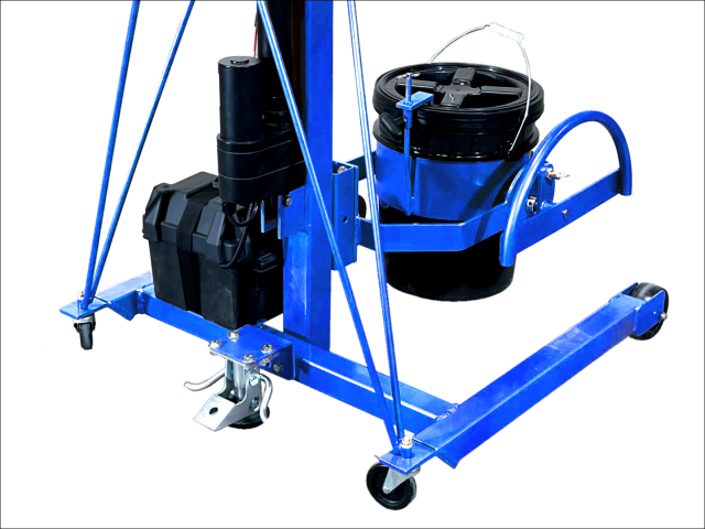 PailPRO Mobile 5-Gallon (20L) Pail Handler with Battery Power Lift and Hand Wheel tilt control. Lift and pour up to 5-feet (1.5 m) high.
