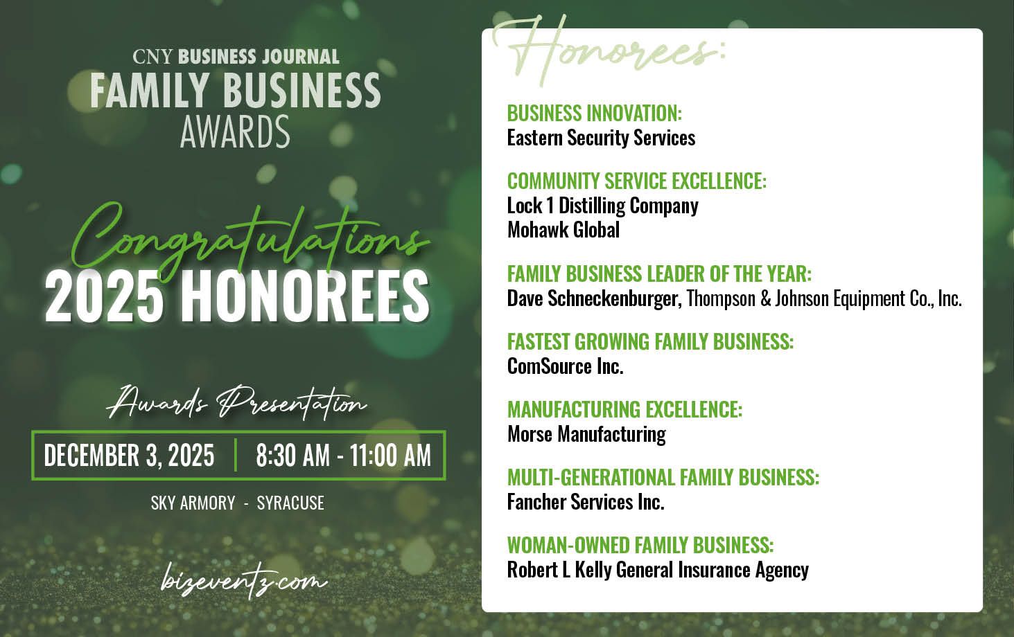 For more information about the awards, visit BizEventz or CNY Business Journal.